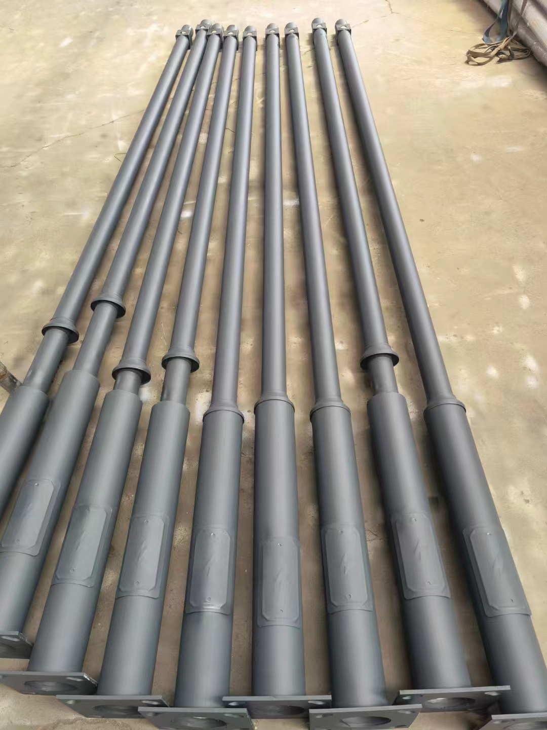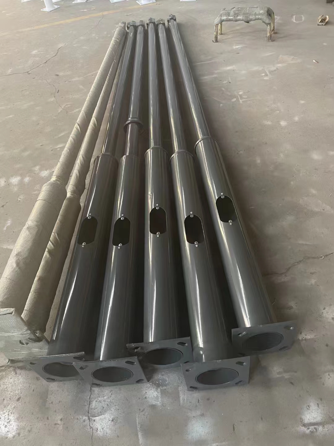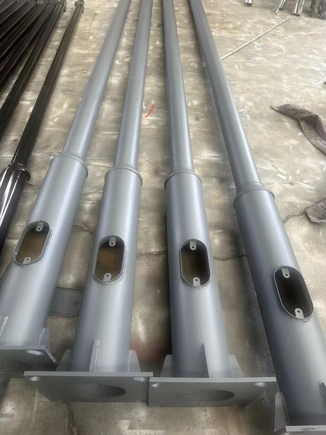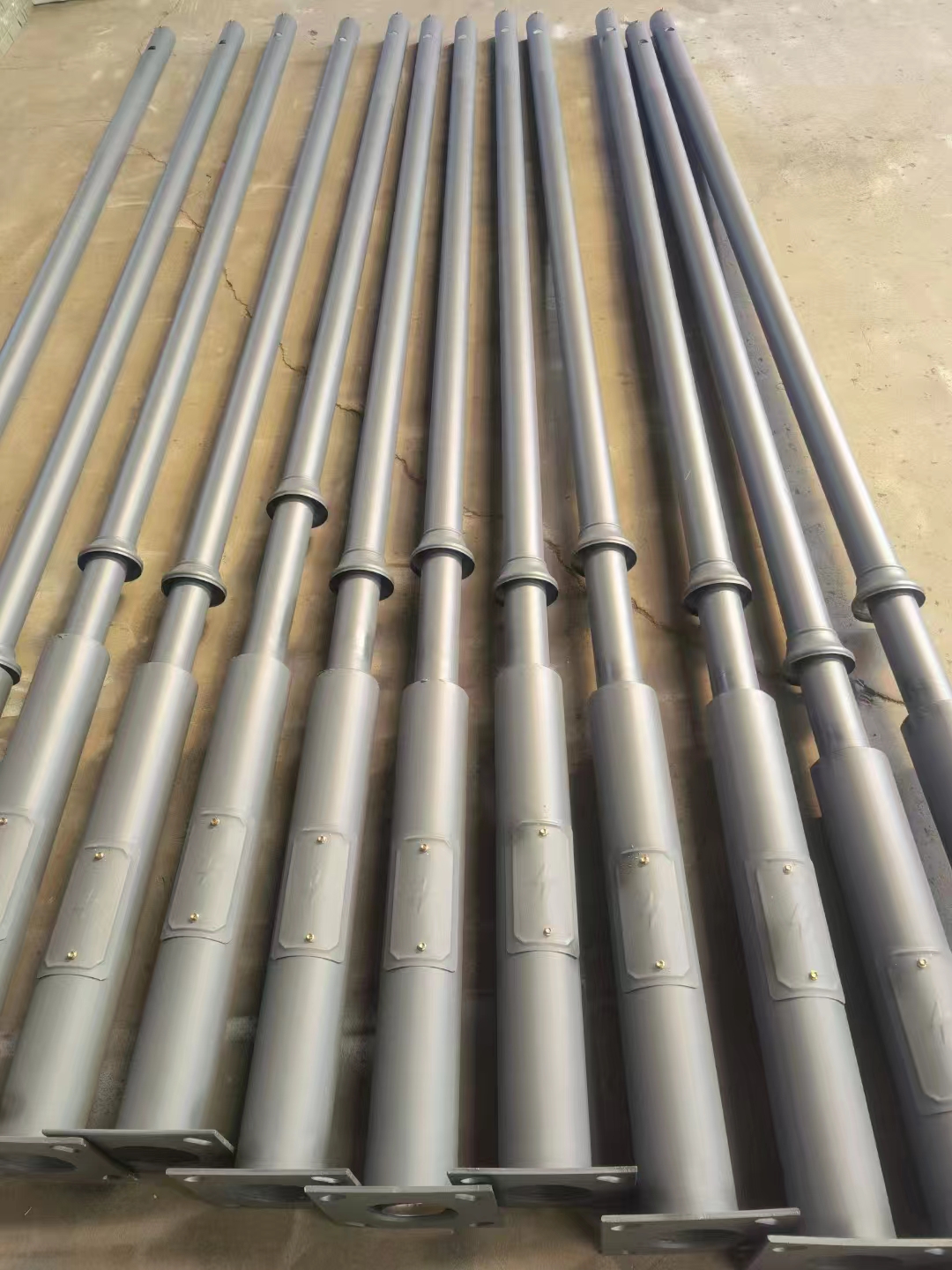 规格:114mm变径76mm高度:1米 1.5米 2米 3米 3.5米 4.0米均有货材质:电镀锌钢管,热镀锌钢管壁厚:1.2 1.8 2.0 2.75mm 订制底座法兰固定斜距220或者240,8mm壁厚4米以上底部焊加强筋
