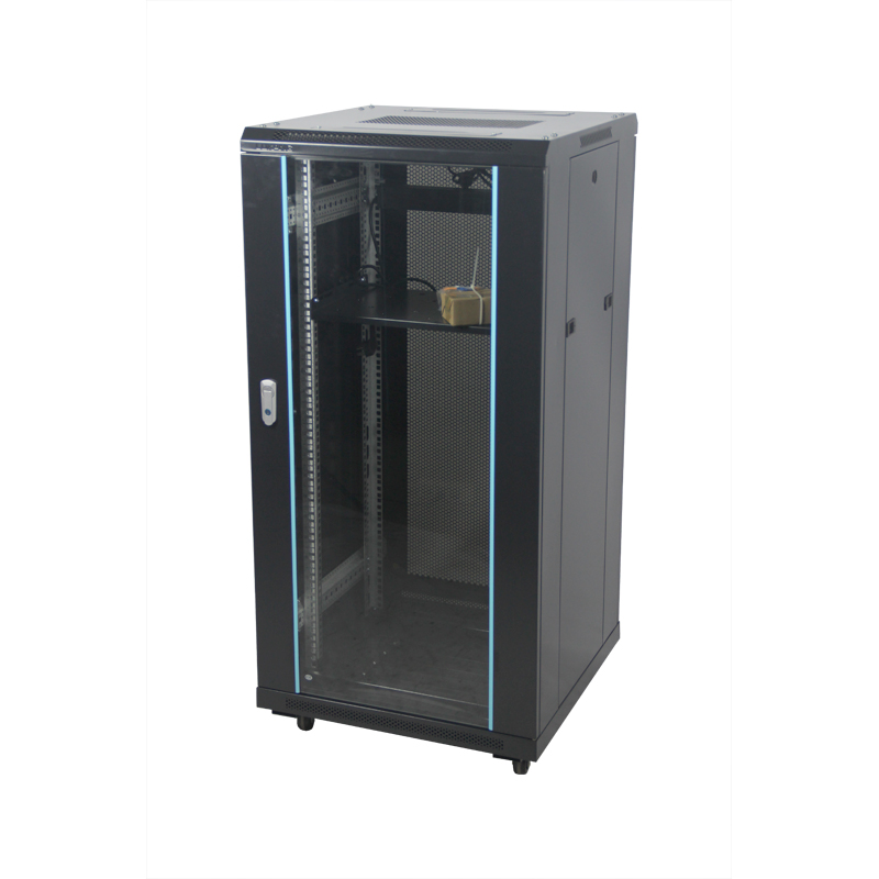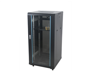 ◆服务器柜配高密度六棱网孔门,标准柜配4.5mm白色钢化玻璃门,均使用高级月光旋把机柜门锁